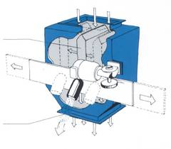 Préleveur d'échantillon en continu pour céréales, matières alimentaires, semences, matériaux granuleux et pulvérulents. Le prélèvement d'échantillons se fait au moyen d'un mobile ouvert à sa partie supérieure. Ce mobile se déplace automatiquement au travers de la masse de produit. L'échantillon est donc représentatif de l'ensemble du flot de produit, puisque le mobile balaie la surface totale de la section d'écoulement. Le rythme de prélèvement peut aller de 5 secondes à une heure.